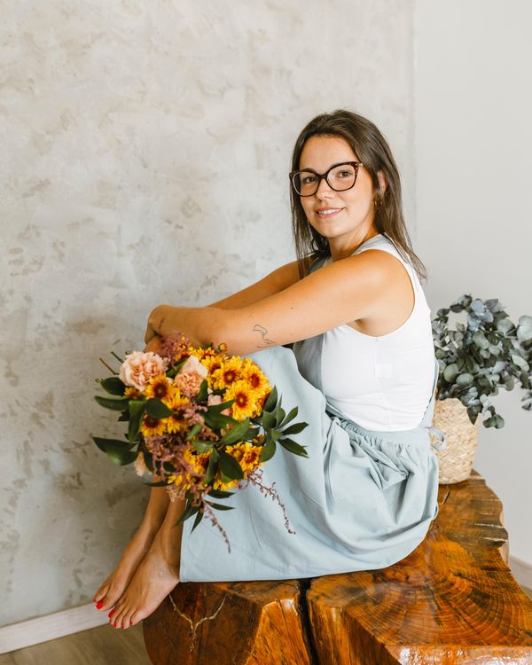 Yo soy Ana, psicóloga y florista por vocación, y en cada proyecto busco unir sensibilidad, escucha y atención al detalle al servicio de las emociones. Mi mirada siempre trata de contar historias a través de las flores. Me gusta transmitir calma y confianza, acompañando a cada persona en su proceso, creando piezas que conectan con lo que sienten y con la intención que hay detrás de cada encargo.